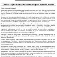 Continuamos a estar atentos e em alerta. Felizmente, podemos continuar a serenar-vos, uma vez que, tendo em conta os cuidados de monitorização diária aos n/ utentes e profissionais, continuamos SEM TER RAZÕES INTERNAS para alarme, não existindo sintomas que possam sugerir infeção por COVID-19.