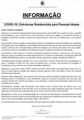 Depois de um aumento progressivo dos novos casos positivos, pela COVID-19, e, tendo em conta, a situação de contingência a que, a partir do dia 15 de setembro, o país estará sujeito, no sentido de acentuar o combate à pandemia, durante as épocas de outono/inverno, várias são as medidas que se nos impõem reforçar.
