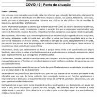Neste contexto, informamos que a metodologia adotada por esta Instituição na gestão do surto nos parece, até agora, adequada, tendo em conta que, sem olhar a meios, nos temos capacitado para prestar a assistência necessária aos nossos utentes, libertando os serviços de saúde, designadamente o Hospital, para outros que possam estar desprotegidos de cuidados médicos e de enfermagem. Neste sentido, só recorremos a estas unidades em casos críticos.